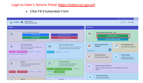 • Voter Services Portal (SIR): voters.eci.gov.in